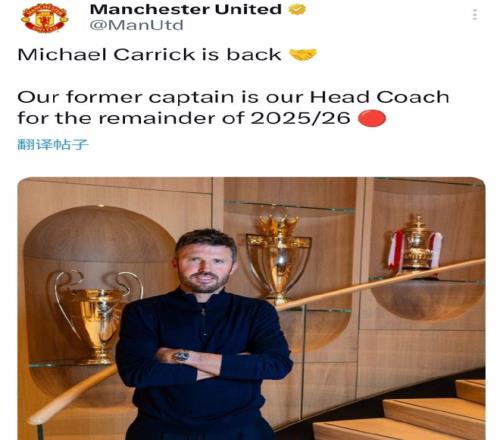 在重掌曼联帅印后,卡里克也第一时间发声:“能够肩负起领导曼联的重任是一种荣幸。本赛季我们仍有很多目标需要争取,我们已经准备好团结一致,为球迷们奉献他们忠实支持应得的精彩表现。”